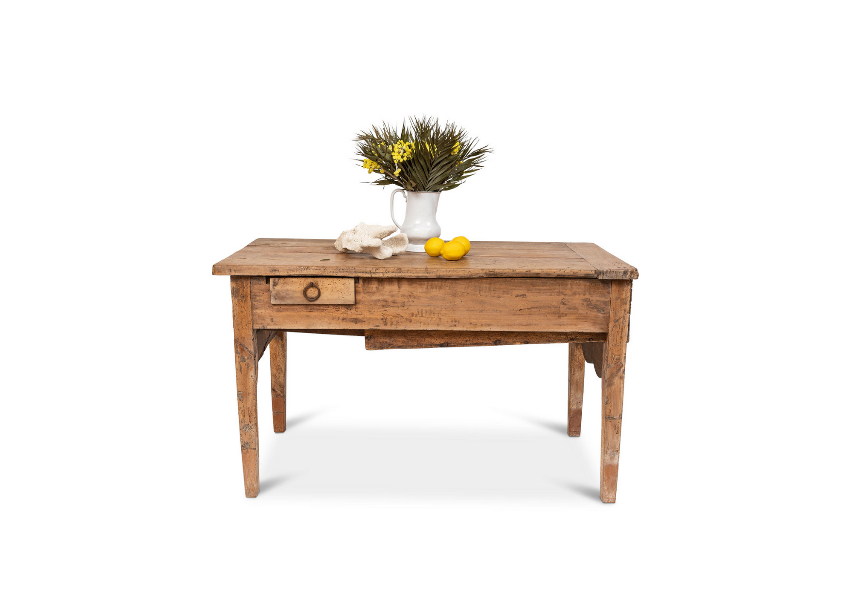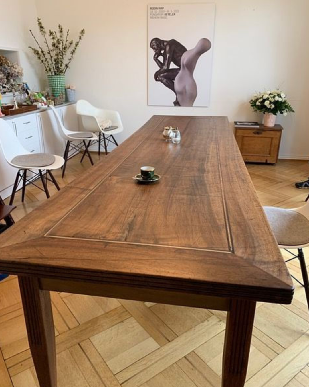 Wir glauben daran, dass Möbel Charakter haben dürfen – und Geschichte erzählen sollen. Deshalb arbeiten wir ausschließlich mit bestehendem, antikem Material: alte Tischblätter, restaurierte Tischfüße und sorgfältig ausgewähltes Altholz bilden die Basis für jedes Stück.